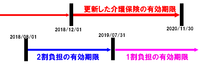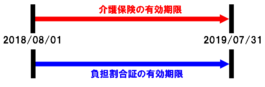 下記 図2に示すような介護保険証と、負担割合証の期間のずれがあることが多いと思われます。