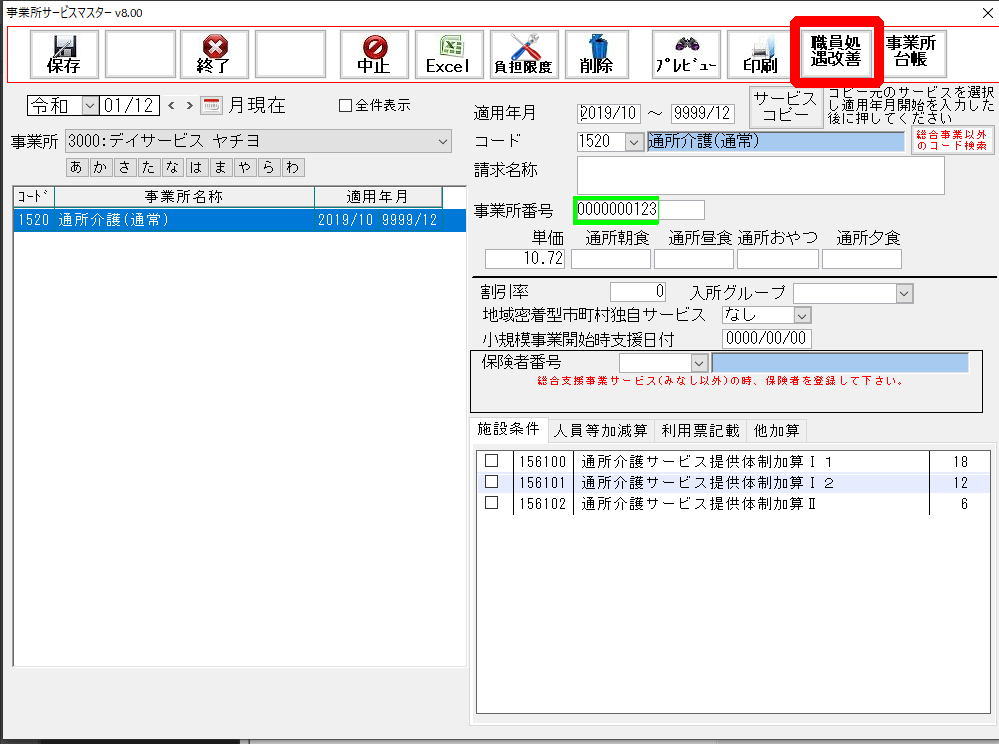 - 特定処遇改善加算区分は「通常」または「特定」を選んでください。